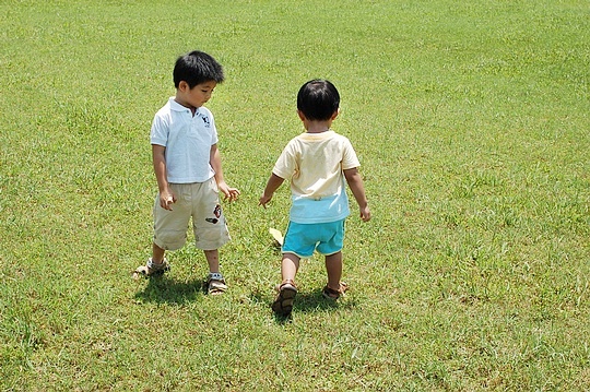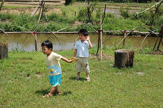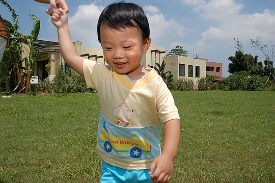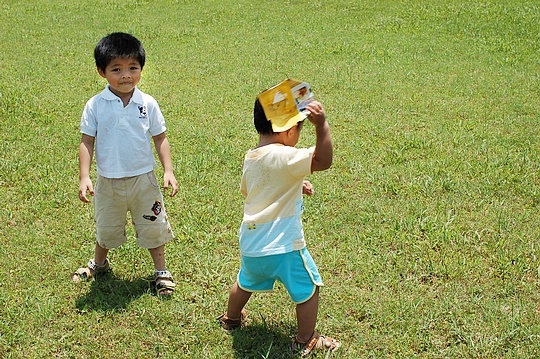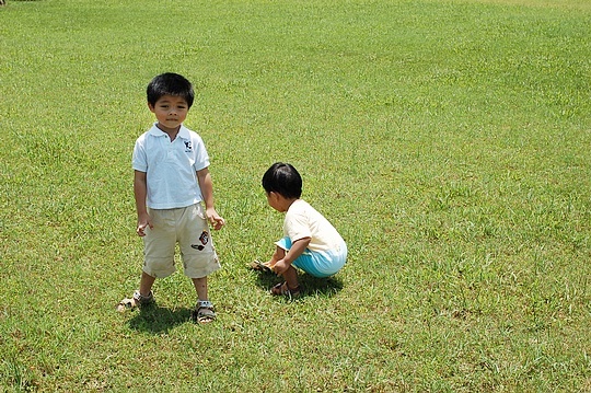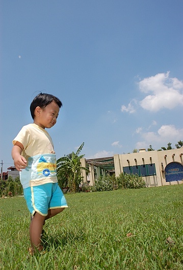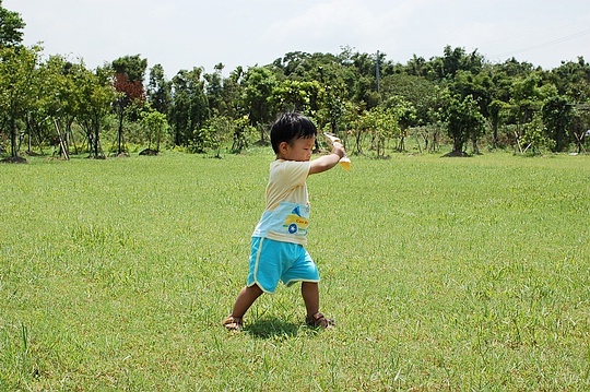 允嘉就在這個草皮上跟新朋友玩起紙飛機(既然龍潭飛機多,當然要玩紙飛機囉!)