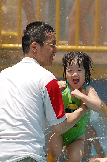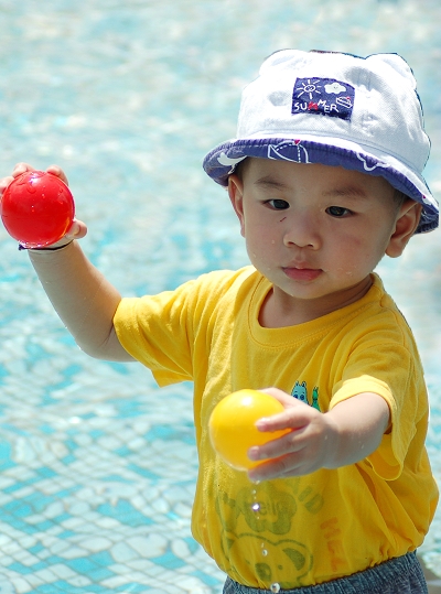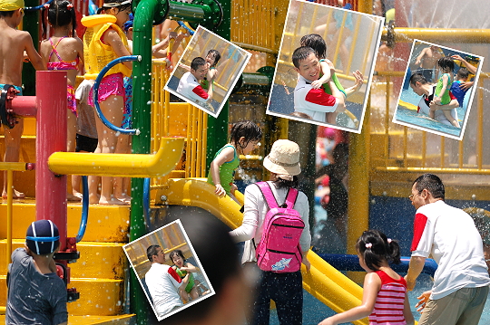 你問我為什麼不帶允嘉一起去喔?因為允嘉對深水區簡直就是怕到極點,一步也不願意踏入,看到四周噴來的水注就怕,連深水區的水比較冰也怕-_-|||,只好放棄帶他下去的念頭,把他留在岸邊我一人獨享滑水的樂趣囉~