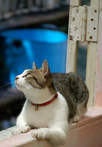 這次蒙馬特則大辣辣的趴在窗邊仰望天空,享受日光浴~