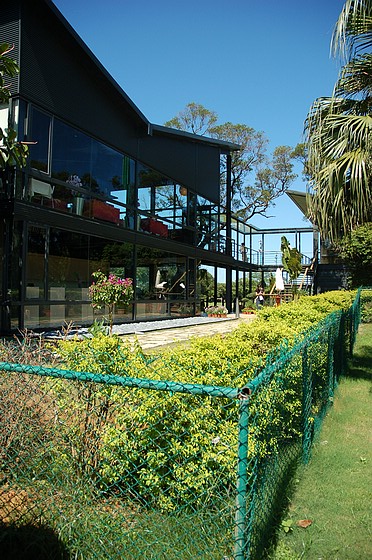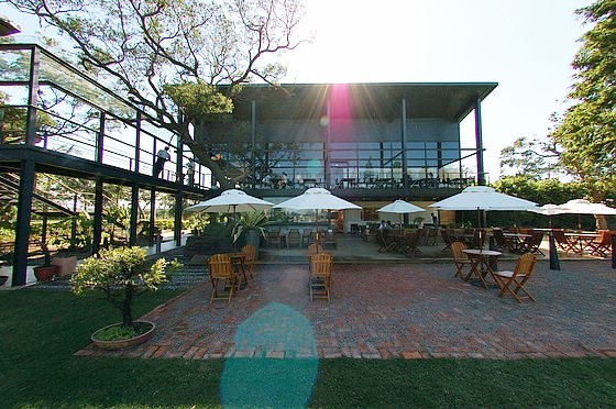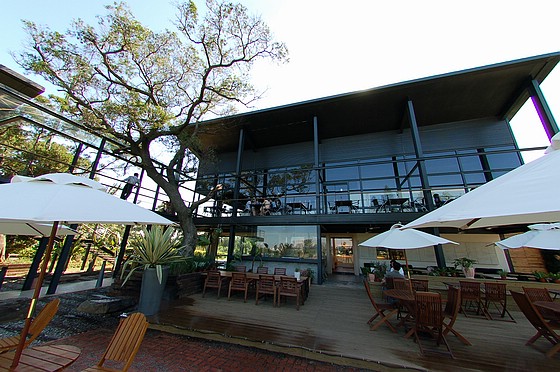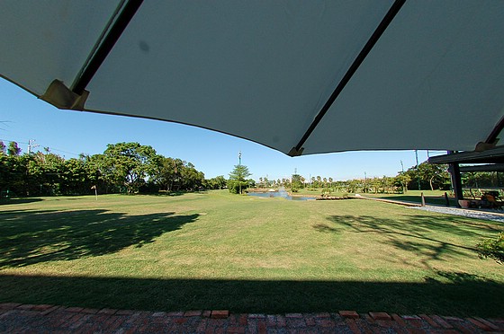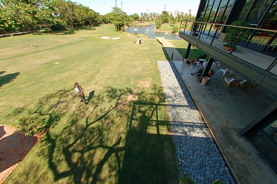 從餐廳二樓望向高爾夫球場草原,也可見到枯樹的倒影