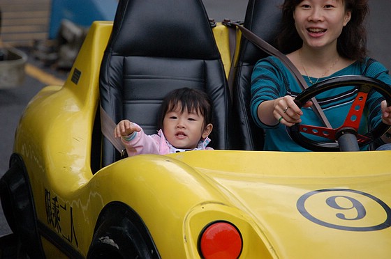 兒童汽車教練場,一人50點(需購點券,一點一元),允嘉上路不久就開始哭,童童則跑完全程。