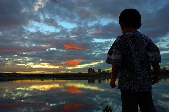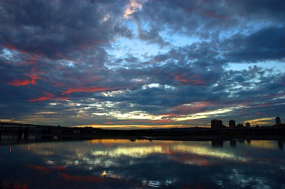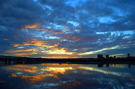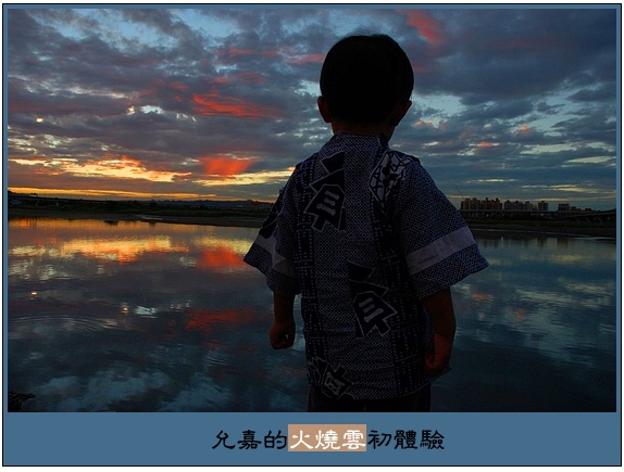 昨天傍晚我們一家三口打算騎bubu去台北後車站補些生活雜貨回來屯積,下華江橋機車引道後轉進外環道時,看到左手邊,河的另一岸,天空竟然紅通通的在作火災,遇到火燒雲啦!我們索性把機車停到路邊空曠處走到岸邊去欣賞燒得正旺的火紅天空(十分鐘就燒光光~好快!)。雖然沒有帶腳架,但好里佳在相機總算有帶在身邊,即便我們操作相機的技巧沒辦法記錄下眼前美景的萬分之一,但這些絢麗多彩的手振照片卻足以幫我們記憶當時心裏滿滿的感動。