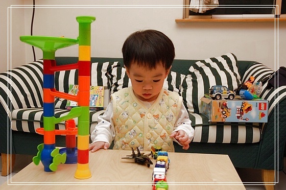 小男生好像都喜歡把車車一台緊接著一台排成直線,彷彿從小就知道長大以後塞車塞不完,要乖乖排隊~~
