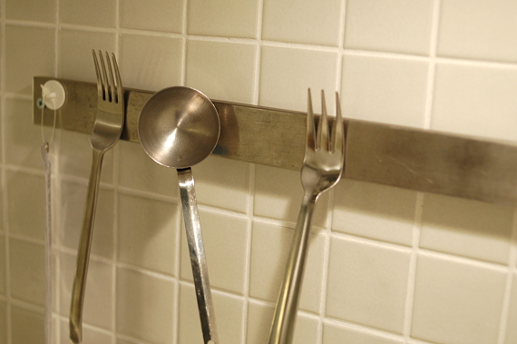 後面的磁鐵條是我們最想買的廚具,可以吸住各式餐具,還包括大菜刀,早在萍子家就對這項發明物讚許不已,連鳥先生也忍不住誘惑拿著就想裝入袋內,趕忙被我阻止,我們家似乎沒有適當的空間可以放置,還是看看就好。