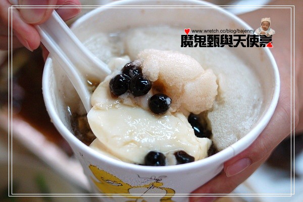 豆花粉圓就比較可惜了點,因為放了些時間才享用,粉圓已經硬掉,豆花也散掉,而綿綿冰也都快溶成糖水,未能盡情品嚐綿綿冰與豆花的完美組合,其實心中有些許遺憾,下次我一定要當場就在車上將掉,才不管車上的小孩有沒有吃飯:P,以慰藉等待多時受創的心靈。