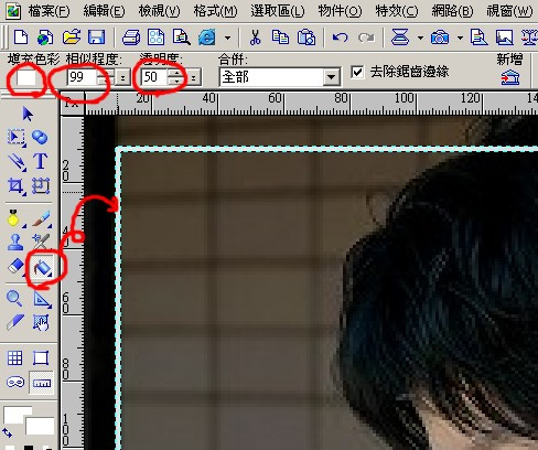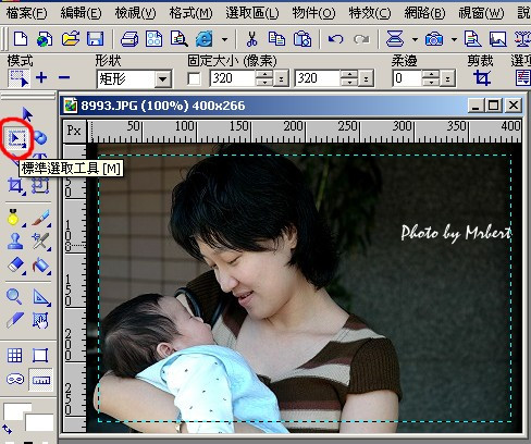 3、標準選取工具(※因為上一步有叫出尺規,所以比較清楚邊緣寬度※)