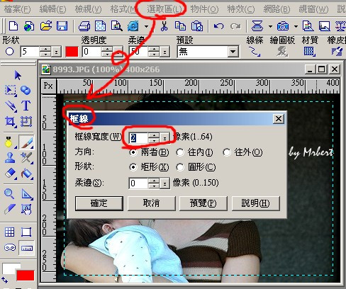 我的框線做法是按照數位比較王網站的教學做出來的,站長jerome用robodemo(現在改名為captivate)作了一個很讚的動態教學檔,大家可以順便看看jerome站長拍的101大樓照片,更是讚喔!