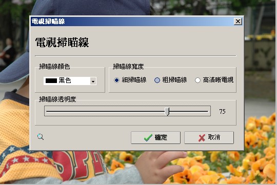 一個動作就完成,超easy!而且還可調透明度及掃瞄線顏色!