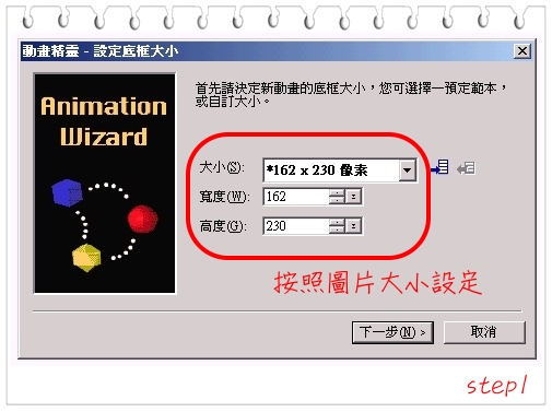 使用軟體為PhotoImpact附贈的GIF Animator,步驟記錄如下:
