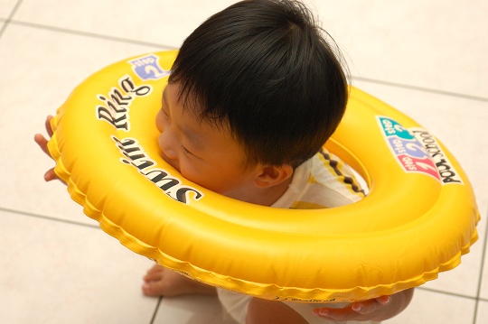 第二:下水前可用泳圈拉拉筋骨,當成暖身運動,以免抽筋