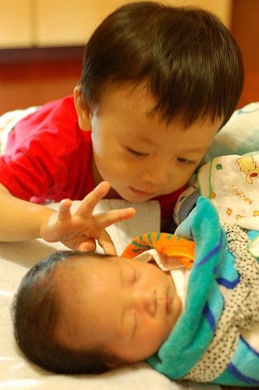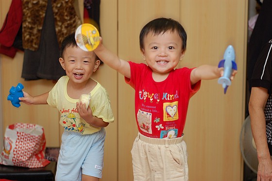 要讓我們不打架的唯一方法,就是讓我們雙手都有拿東西,而且最好是一手食物一手玩具。