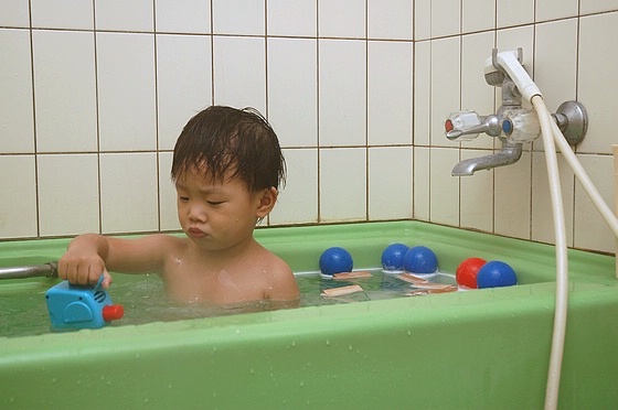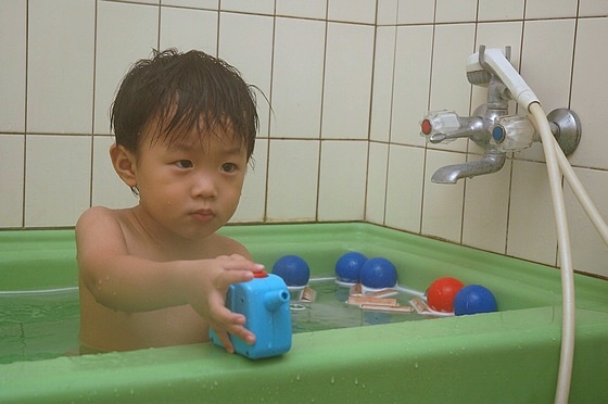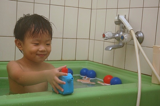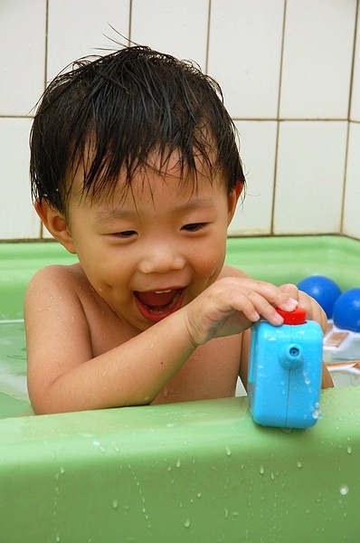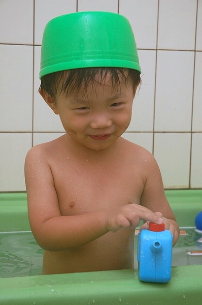 去年夏天假日颱風特別多,今年則是寒流特別強,把拔都怕我吹風著涼不帶我出去玩,最近洗泡泡浴兼打水仗噴變成我周末假日關在家裏最快樂的一段時光!