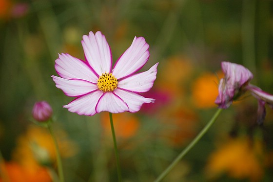 8.(這張圖特別有趣,同一株上由左至右分別是含苞待放、盛開綻放、凋零老去的波斯菊)