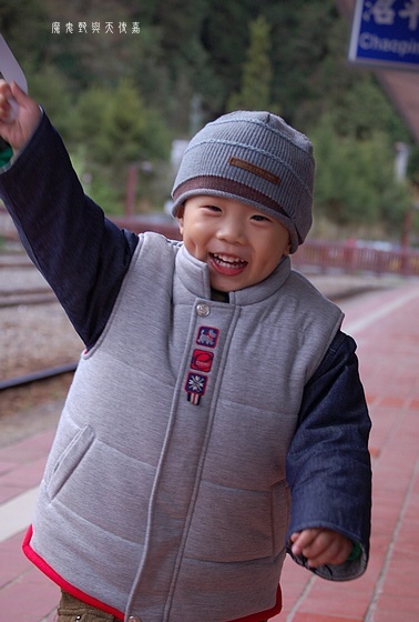 到了沼平車站的允嘉正處於極度興奮狀態,這小傢伙昨晚才睡四小時,怎麼可以精神這麼好?看來高山的空氣及氣候並無對他造成任何影響,反而更為之亢奮,好吧!要跑要跳儘管去,阿里山的土地盡在你腳下。