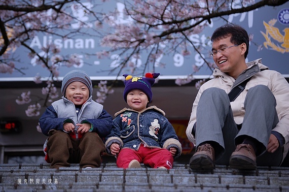 這麼美的景色就算熬夜開萬里路都值得!尤其是兩個小小孩的表現更是沒話說,一路上乖乖的自己走路,不吵不鬧,展開雙臂迎接他們人生中第一次阿里山櫻花花見。