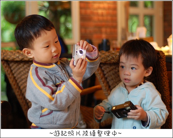 這兩個小朋友這天真是賺到 !原本這次還想比照上次(新竹內灣之旅)不帶小孩來趟悠閒之旅,沒想到最後還是因為鳥先生想要帶允嘉同遊而破壞我想悠悠哉哉的享樂計劃-_-|||,上圖為恩恩拿著Fuji NATURA BLACK F1.9月光黑色底片機,仔細嚀聽前輩允嘉臭蓋他新入手的CANON IXUS60銀狐數位機可以亂亂拍,小人界的數位底片大戰~~
