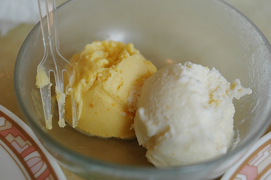 王子飯店提供了多種口味冰淇淋,有專人負責挖冰淇淋,我們覺得上面這玉米口味和鮮奶口味很讚!