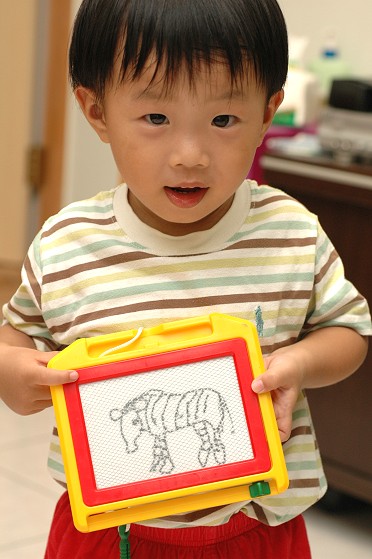 媽媽試著要誘導我自己畫,但是動嘴就有想看的動物,幹嘛花腦筋自己動筆咧?