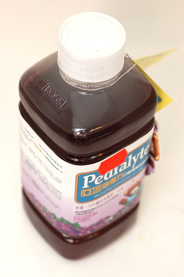 亞培倍得力口服電解質維持液(199元,店員推薦)和舒跑兩罐,算是白買了,因為允嘉一口都不喝而且還一看到就說:「我不要喝葡萄汁,也不要喝有舒跑的開水。」-_-|||