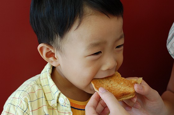 媽媽手拿開!相信我,我不會弄掉的啦!