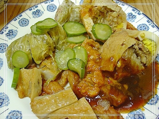 清湯瓜子肉湯是整條街上的異數,幾乎用餐的人都集中在此,座位大概八九成滿,我們選了邊邊角角的位子坐下來點了燉肉飯、魯肉飯及清湯瓜子肉湯,再到旁邊的壽司王叫了105元關東煮來享用。