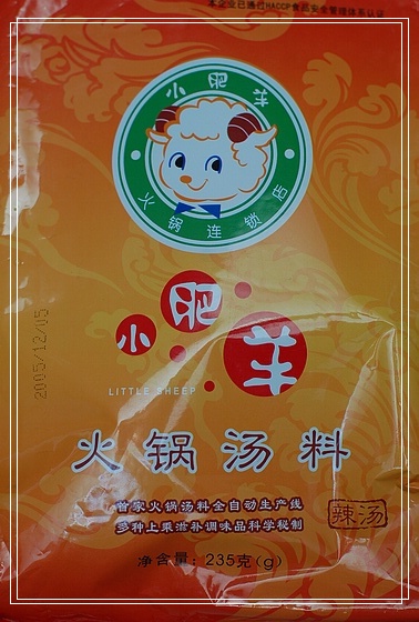 今日午餐為小鳳遠渡重洋帶回來的小肥羊湯底,聽說是在深圳某一家專賣高級貨的百貨公司超市內意外發現,不囉唆馬上外帶回來給姐妹嚐鮮!這鍋底雖只需60元但美味超凡,獨特辛香料的湯底喝起來簡直與要價不斐貴桑桑的天香回味鍋如出一轍!這會兒天香回味鍋再也賺不到我的錢啦~~~