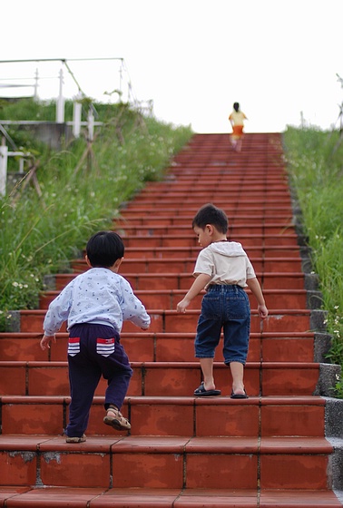 暖暖運動公園是小鳳一家子常來散步的好所在,一向動作慢的允嘉,拼了命的跟在安安哥哥及瑄瑄姐姐的後面,雖然階梯不好爬,還是努力地跟上,而貼心的安安哥哥則刻意放慢腳步等他。
