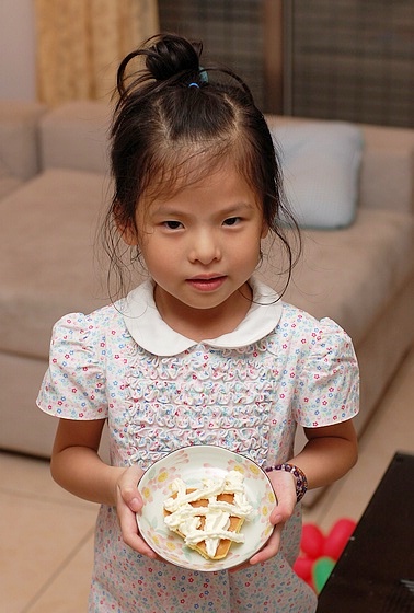 瑄瑄自己做的愛心鬆餅,上面那些破壞成品的奶油裝飾是我上的orz...