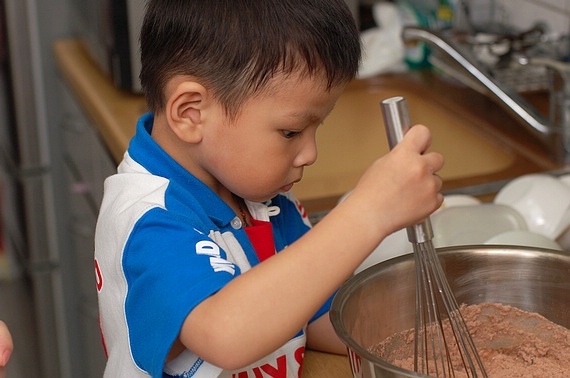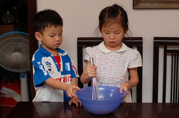 這個年紀的小小孩,真的很愛自己來,而這類簡單的西式小點心正好適合他們來做,連愛看電視的安安這時也吵著要幫忙
