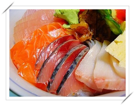 這裡的散壽司上面的各式新鮮生魚片,每次來吃種類都不太一樣,不論是蝦卵、鮭魚卵、日式醃菜配菜下面的醋飯,每一口都是高級的享受,令人感到幸福滿點,另外這家的蛋包飯也是不錯的選擇喔!讓人一口接一口。