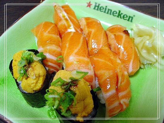 鮭魚肚握壽司(170)、海膽握壽司(一粒90)