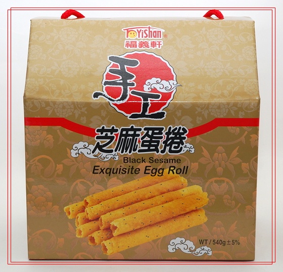 當貨送到時,我簡直無法相信,區區五盒竟然可以塞滿一大箱,這家名為福義軒手工蛋捲,其禮盒包裝體面夠份量!如需宅配僅提供三種口味,計有芝麻、咖啡、抹茶等口味,一向保守的我為免誤踩地雷,選擇最傳統有保障的芝麻口味。