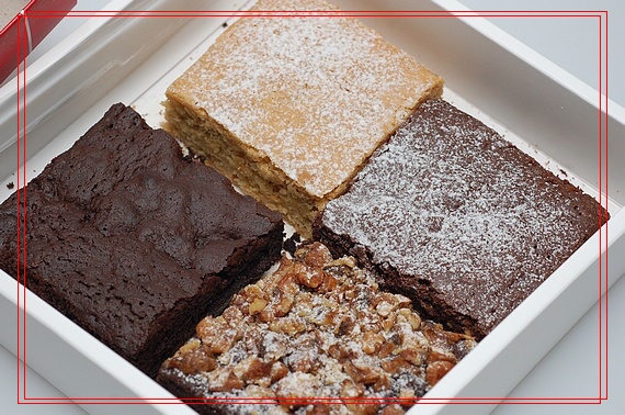 禮拜五晚上邀請允嘉的安琪外婆、傑克外公、小玲乾媽來家裏共賞牛熊大戰(老象迷鳥先生一直想偷轉至43台看象蛇大戰~~),這天允嘉乾媽剛好去面交ptt團購的甜甜布朗尼,就順便帶過來給大家當烤鴨大餐的飯後甜點。