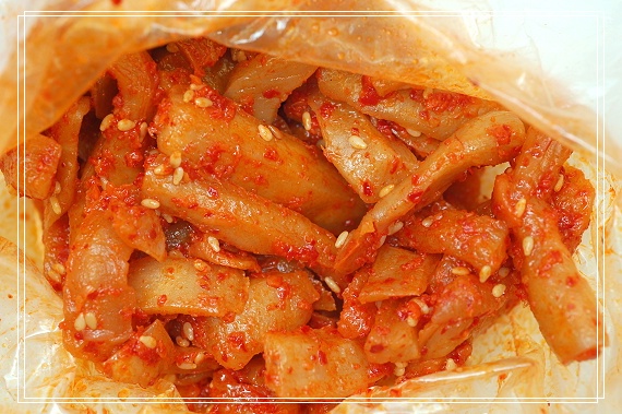 除了團購的三大包泡菜之外,didi還貼心的幫大家分裝了廠商額外購送的醃辣蘿蔔,這辣蘿蔔沒有看起來那麼辣,辣度對我而言算是輕度。