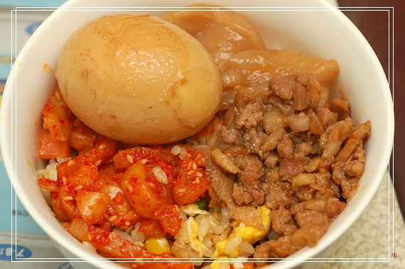 最享受的吃法是:再淋上家裏自製的香噴噴瘦肥兼俱的魯肉及大顆魯鴨蛋(最近家裏的魯蛋都改用鴨蛋,因為鴨蛋的蛋黃又大又綿密),或是泡菜配婆婆拿手的油飯(屍骨無存,來不及拍照),雖然是常見的家常菜,卻是我的最愛咧,推薦推薦!