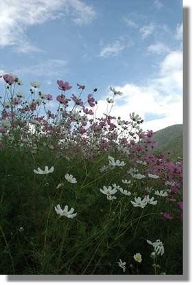 ~~~拼性命去賞花~~~想去看波斯菊的人,現在可以去啦,但是請不要走力行產業道路,路況極差!本來以為十月才會有花可賞,但是礙於燕子的休假日,只能在九月中旬成行沒想到,沿路已經有波斯菊隨風搖曳迎接著我們看到武陵農場的波斯菊已經是令人驚喜的意外收穫接著來到福壽山農場製茶廠,波斯菊開得又多又密