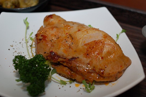 晚餐並不在此用餐,需至位於日月潭涵碧半島的日光湖畔風味餐食館,應該是關係企業所經營的簡餐店吧?入內待服務人員併桌之後,我點了門口招牌推薦的套餐:梅汁豬肋排餐、迷迭香雞排餐。