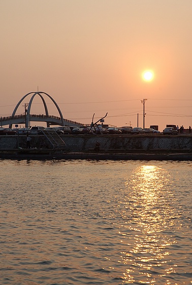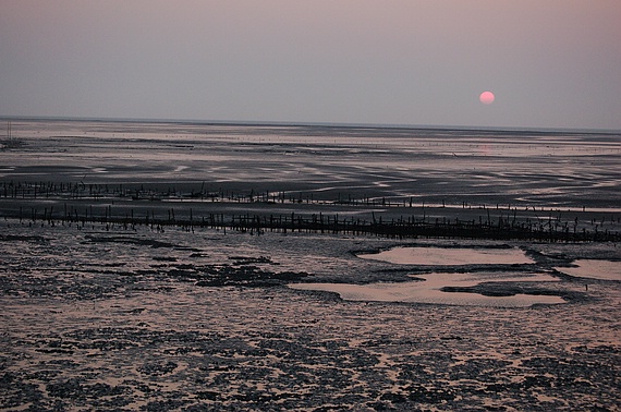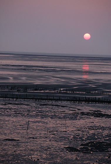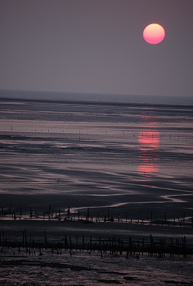 吃完蚵爹後,從老街驅車到不遠處的王功漁港看夕陽,這裏很神奇,明明馬路那麼寬敞,路邊停車位那麼多,還是在港口邊設了個收費停車場。不過大家都還是蠻勤勞的,寧願停遠一點多走幾步路省五十元吃蚵爹。