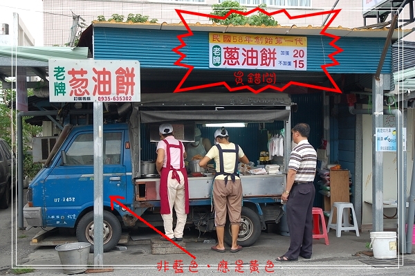 網路上得到好風評的應該是黃色發財車的老牌『炸蛋』蔥油餅(大哥大0922608798),更靠近林森路和復興街口,而這間藍色發財車的老板,網路上有人說是親戚開的,也有人說是學徒開的,反正二家就是有點關系就是了。台北也有類似口味的炸蔥油餅,士林夜市陽明戲院口的郭蔥油餅和光華戲院對面華聲街口的郭蔥油餅,都是炸餅加炸蛋,外酥內軟但略油,不怕肥的人有機會可以前往一試。