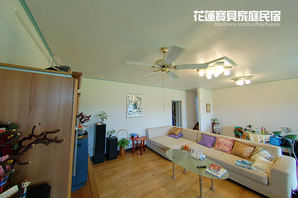 配備齊全可唱卡拉OK的寬廣客廳,還有貴妃椅可供躺臥,可惜沒冷氣,待久了有點熱。