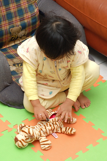 一拿回家,允嘉就餵老虎吃了不少東西@@,還說:『老虎,我餵你吃東西喔!這樣你才不會餓~』