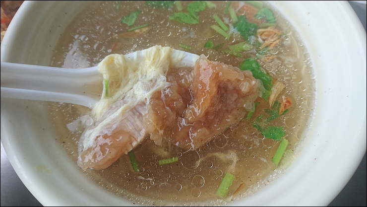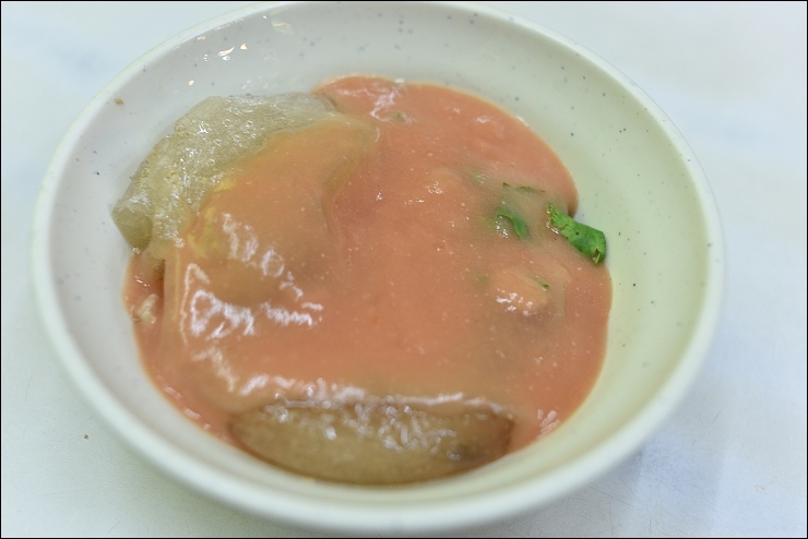 赤肉湯45元,肉很嫩,粉也不會裹很厚,湯頭放了許多很香的油蔥,喝完還想再來第二碗。