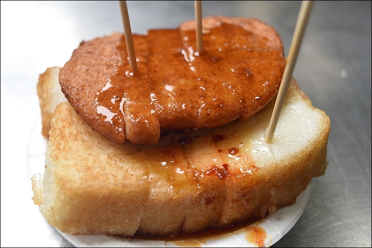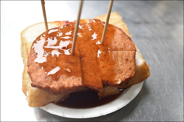 外酥內軟,好吃!口感跟士林廟口好友帶我吃過的來來臭豆腐差不多。