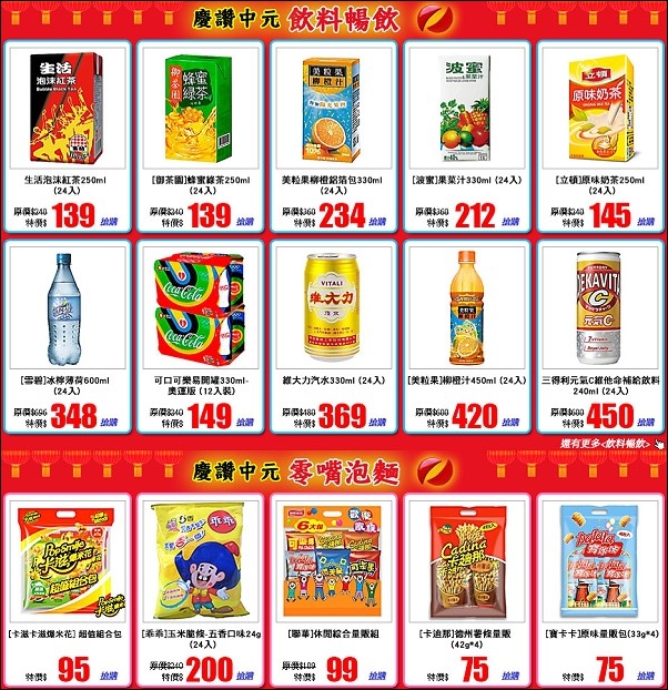 以我們家而言,除了柴米油鹽基本採購之外,整箱整箱的飲料泡麵更是中元節必備,7NET的茶水飲料泡麵專區有不少中元折扣特惠組合可撿。
