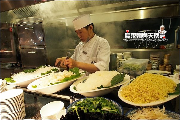 熟門熟路的友人,一入座馬上帶我往熟食區前進,先來個現煮的越南河粉,湯頭清爽好喝,牛肉也有嫩,口頭請廚師多給點牛肉,牛肉會多一片@@