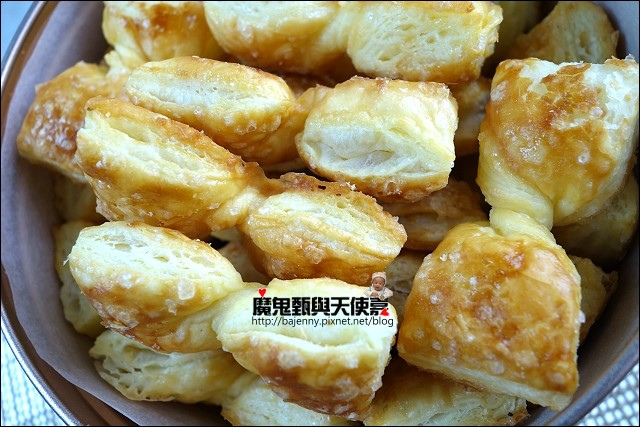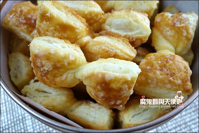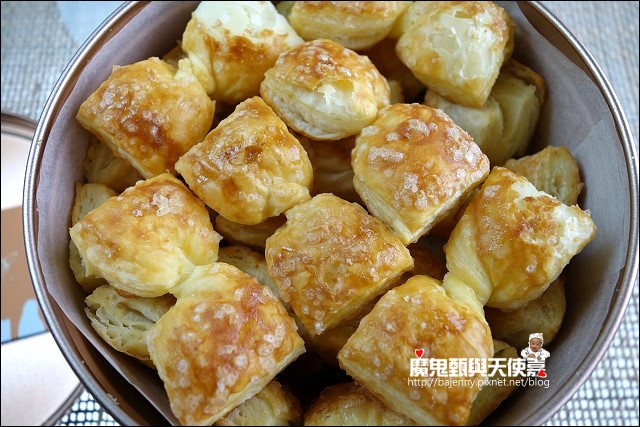 這煲呔酥的外型像是可愛的領結,甜度較一般蝴蝶酥來的低,Size也較迷你,大人幾乎可以當成一口酥來吃,小朋友食用也方便。![]()