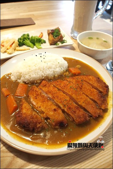 咖哩豬排160元,享110元內飲料半價優惠,超過110元需補差價,平日午餐時段點餐招待紅(綠茶)一杯。允嘉很快的吃掉咖哩豬排,我問他好吃嗎,他說豬排還可以,但咖哩是冷的~~