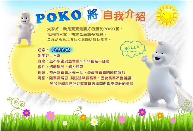 滿意寶寶MamyPoko代言人POKO將的出生地也是在日本,身高跟滿意寶寶S size的包裝一樣高,有著圓滾滾的可愛造型,跟寶寶一樣讓人想要捏一把、咬一口。