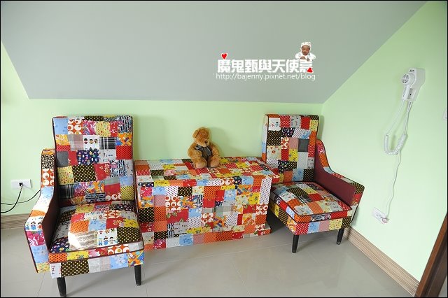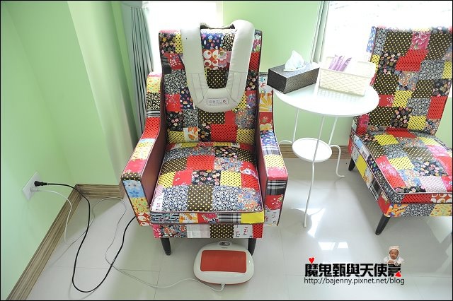 這是二樓唯一的套房,除了加大的雙人床,旁邊還有一張沙發床,整理照片的時候,竟然看到有類似按摩的設備,好像是民宿準備給客人使用的(但大嬸沒機會用到)...