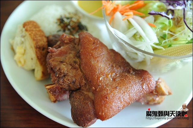 我們連午餐也直接在這裡解決,有日式牛肉壽喜燒和酥炸德國豬腳,這兩份完全被我和允嘉秒殺,連一向不太吃肉的野馬妹,吃了一口豬腳又繼續order,豬腳來源聽說跟王品叫貨同一家。